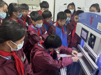 在各实验室,同学们通过观察纤维形态、了解纤维变纱线、见证纱线成布的关键环节,快速串联起纺织生产逻辑。简洁直观的展示便让大家对衣物来源有了清晰认知,轻松打通“生活与科学”的连接。