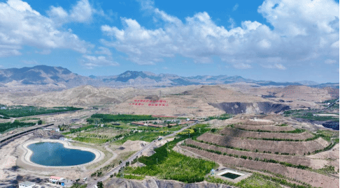 在宁夏石嘴山市大武口区石炭井,曾因过度开采而满目疮痍的矿山逐步恢复绿色“容颜”(2025年6月30日摄,无人机照片)。新华社发(袁宏彦摄)