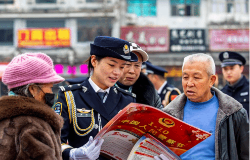 警察在贵州省黔西市水西广场为市民宣传防电信诈骗知识(2026年1月10日摄)。新华社发(范晖摄)