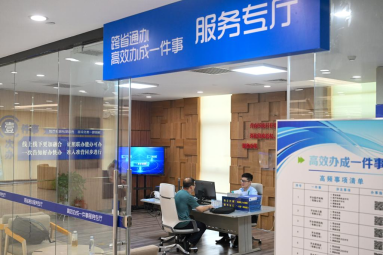 一名男子在天津市河西区政务服务中心“跨省通办高效办成一件事”服务专厅内办理业务(2024年7月16日摄)。“高效办成一件事”为企业创造便利的营商环境,促进经济发展。新华社记者 孙凡越 摄