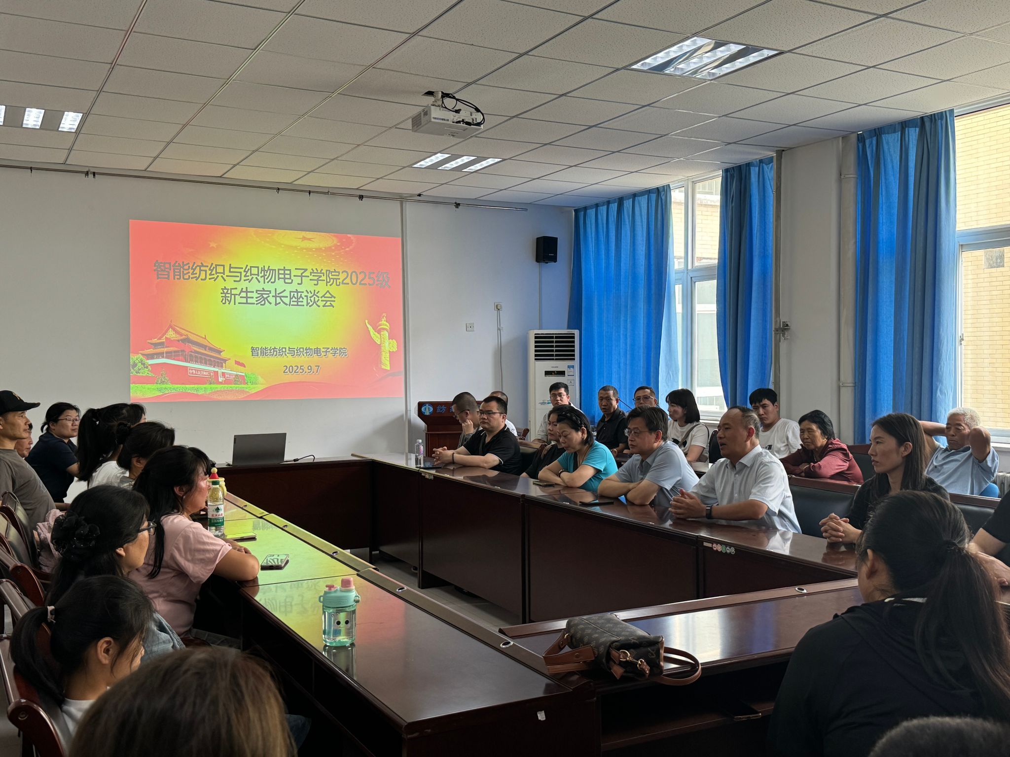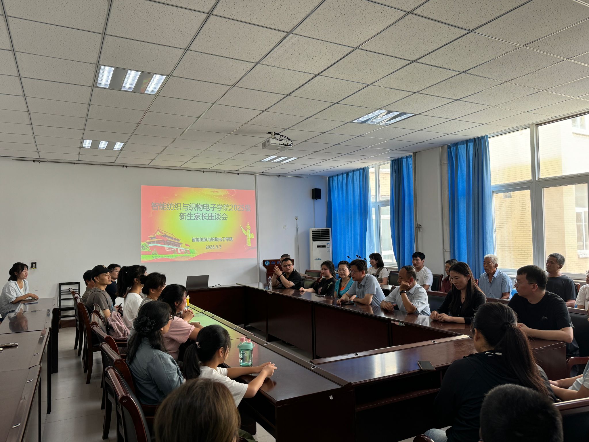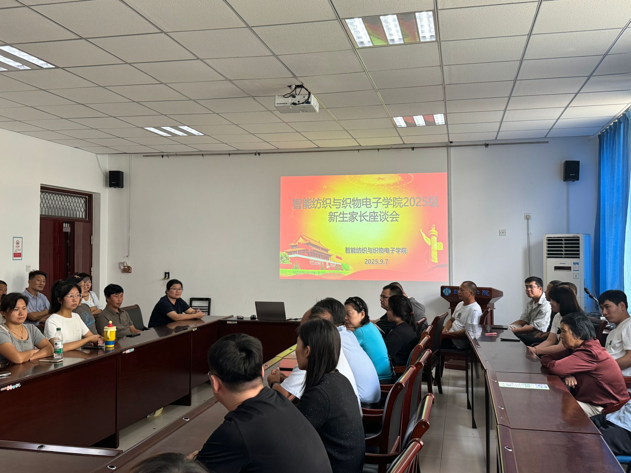 9月7日上午,智能纺织与织物电子学院为帮助新生家长深入了解学校、学院办学特色与育人理念,搭建家校协同育人桥梁,在二号组团C座202会议室召开2025级新生家长见面会。学院党委书记吕继东、副书记杨方超,新生辅导员张丹丹、教师代表陈宇恒及部分2025级新生家长、2025学生参加会议。