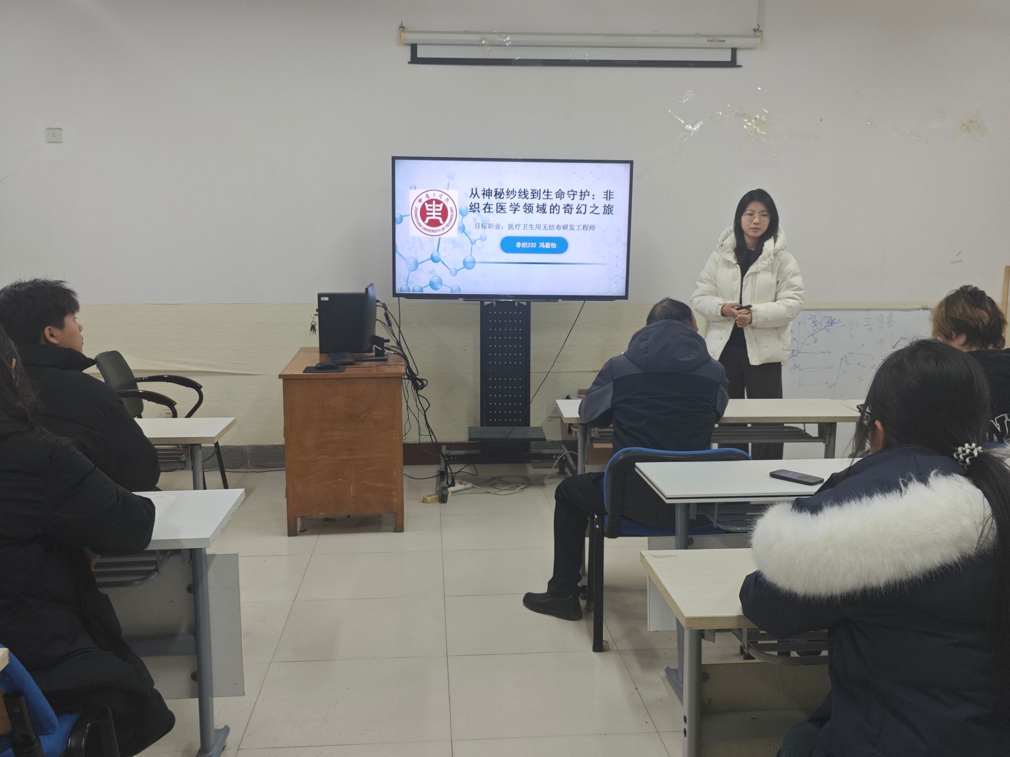 随后,杨继枝、杨娟娟老师结合自身多年从事职业生涯规划工作经验,通过大量的案例分析,从大赛赛事背景、赛道设置、赛事规则、评审标准等方面的变化进行了深度解读。同时根据赛道设置,对职业生涯规划书、PPT呈现要求等相关事项做了详细讲解。本届参赛作品《深耕无纺 筑梦研发》《染韵匠心 整装待发》《织智未来:纺织工程师的智能化之路》等主持人做了汇报。2位指导老师对作品做了分析,提出指导意见,对同学们提出殷切期望。